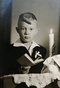 Jerzy wraz z matką pozostali w obozie Stutthof aż do jego ewakuacji. Więźniarki z dziećmi opuściły obóz 25 kwietnia 1945 r. Halina z synem, a także inne kobiety z dziećmi oraz więźniarki w ciąży, zostały zaokrętowane na barkę o nazwie „Vaterland”. Na jej pokładzie znalazło się około tysiąca więźniów, ewakuowanych drogą morską w kierunku Niemiec. Po kilkudniowym rejsie, odbywającym się w skrajnie trudnych warunkach, jednostka dotarła do Zatoki Lubeckiej, w rejon portu Neustadt. Zakończenie wojny oraz wkroczenie wojsk brytyjskich do Neustadt poprzedziło jednak dramatyczne wydarzenie – bombardowanie przeprowadzone przez lotnictwo brytyjskie na statki, na których przebywali więźniowie obozów Stutthof i Neuengamme, ewakuowani wcześniej do tego rejonu.